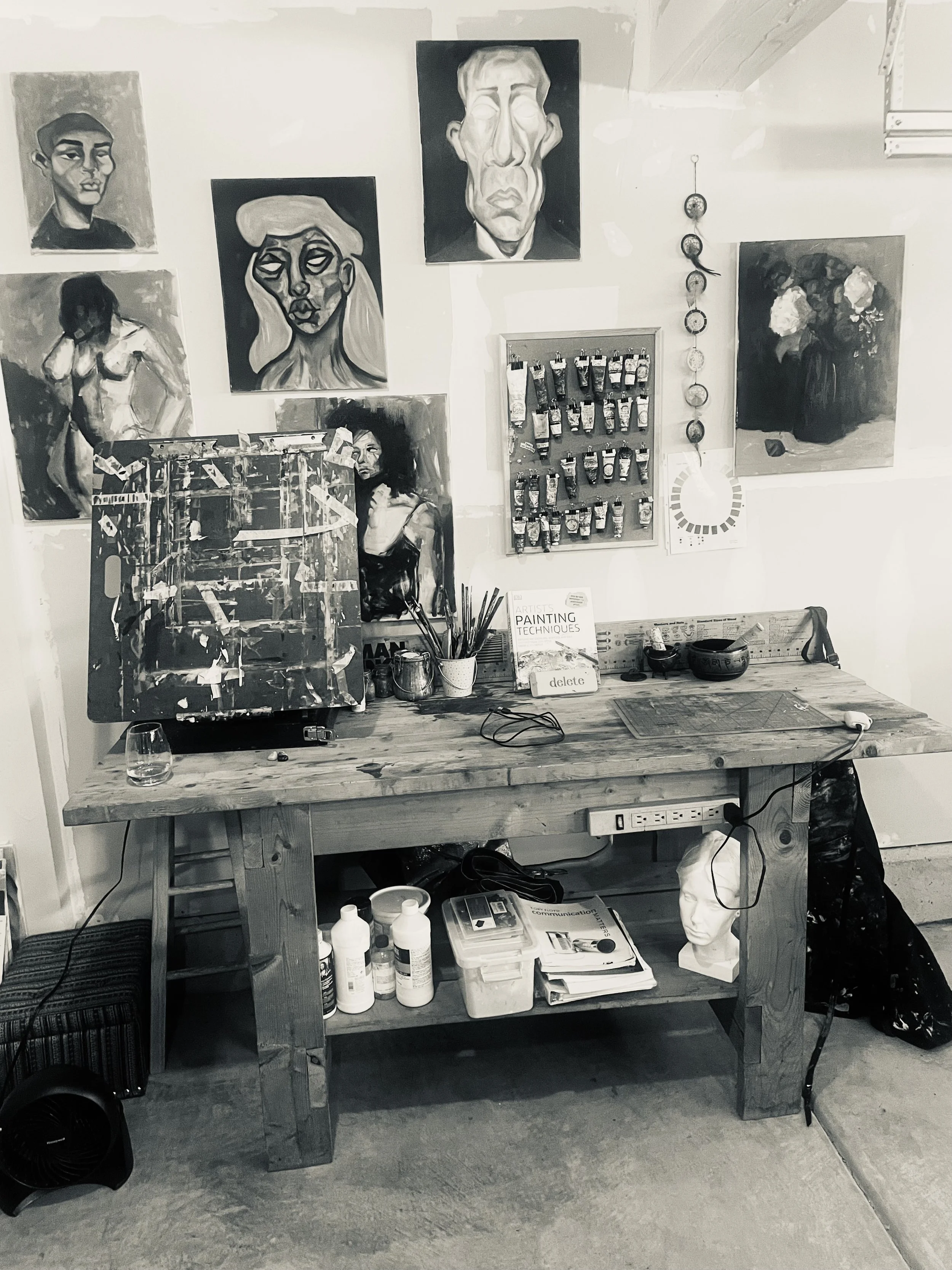 Her practice began during the COVID-19 pandemic, as she is transitioning from corporate life to fully embracing her artistic calling. Inspired by her reflection in the mirror, Bailey creates emotionally charged compositions that reject societal expectations and instead reveal the raw, internal self.